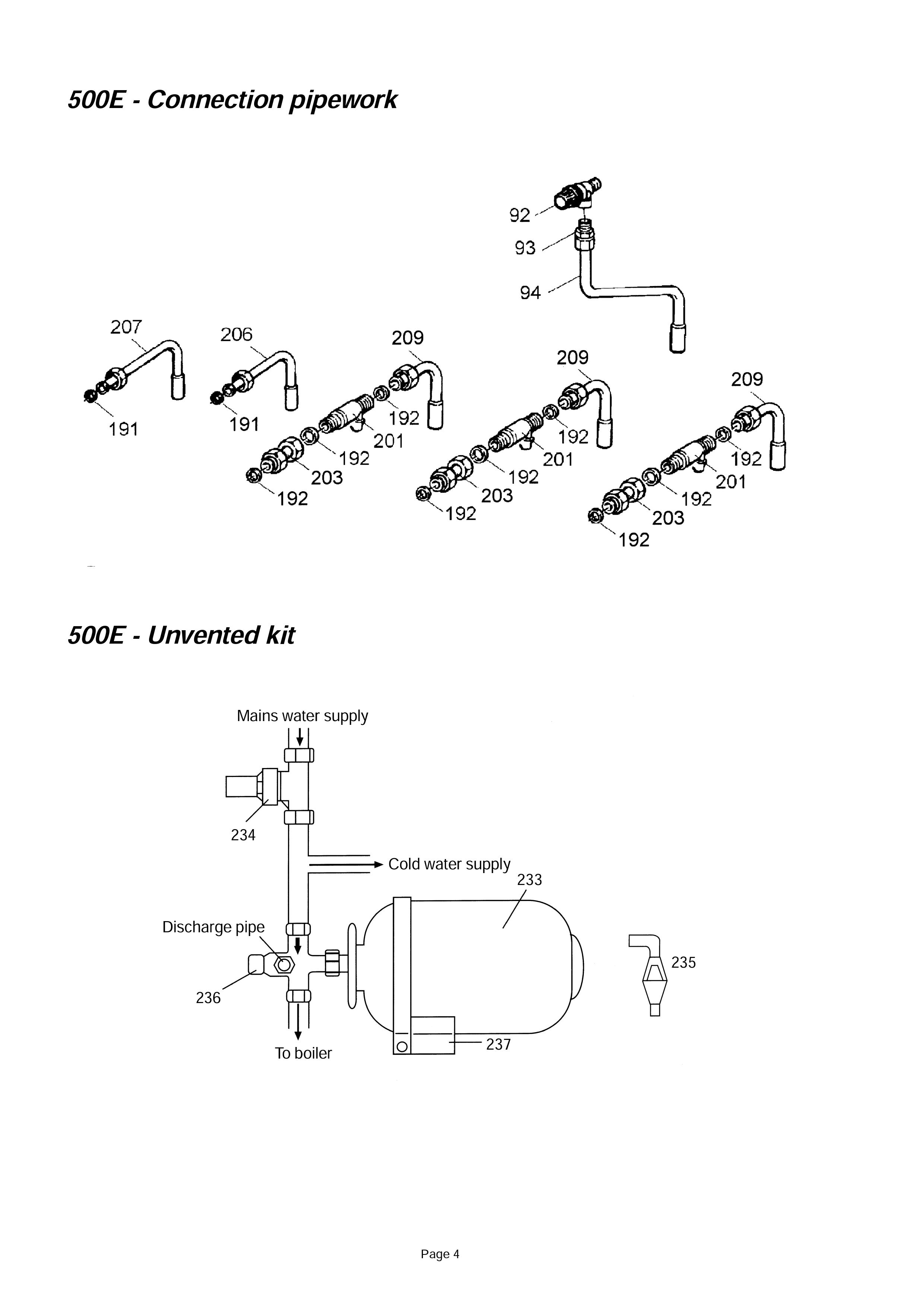 Alpha 500E / CONNECTION PIPEWORK - UNVENTED
