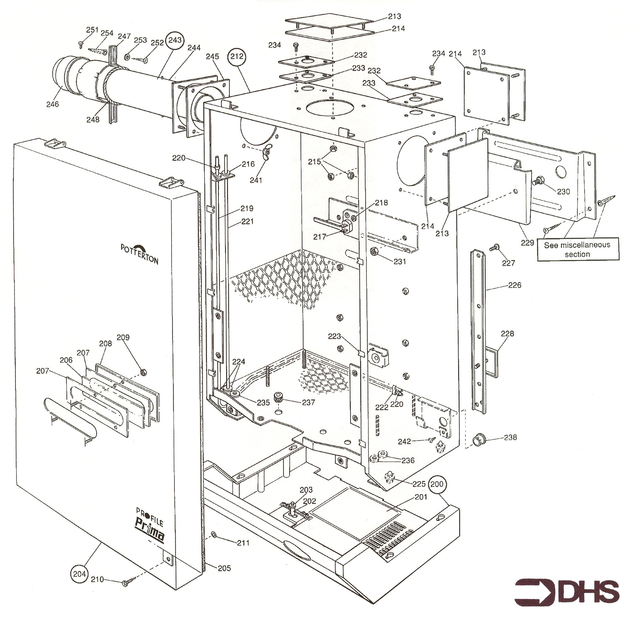 Potterton Profile Prima 50 E NG / CASING AND FLUE ASSY