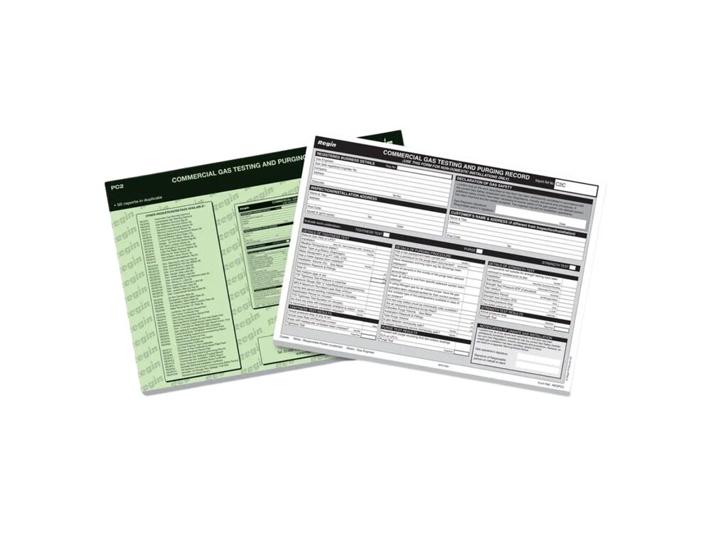 - Name: Regin REGPC2 Commercial Gas Testing & Purging Record Pad